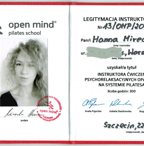 Praktykuję Pilates od 9 lat, z czego od 7 lat (2017) prowadzę treningi, grupowe i indywidualne. Ukończyłam na ten czas siedem szkoleń w szkole Open Mind, które zamknęłam Dyplomem Pilates Matwork Instruktor, pod okiem Bogny Janik Forbes. Pracuję z dorosłymi, z osobami starszymi oraz z młodzieżą. W swoich treningach łącze metodę Pilatesa z elementami rozciągania i ćwiczeń korekcyjnych. Kieruję swoje doświadczenie i wiedzę jaką mam w tym zakresie żeby stworzyć dopasowane treningi do potrzeb moich podopiecznych. Wierzę, że poprzez nasze wspólne zaangażowanie będę mogła pomóc wam w poprawie formy fizycznej i odnalezieniu samoświadomości własnego ciała, by mogło jak najdłużej służyć w zdrowy sposób.